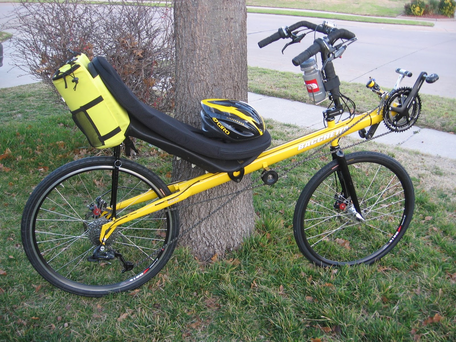 Our Giros each weigh in the neighborhood of 40 pounds each, curb-weight. Add 140oz water (typical summer load out of water on bike) and you are adding over 8 pounds more weight to an already heavy system. My Giro, with a slightly different setup than DH's, likely weighs 50 pounds with all the water onboard. That's a lot of weight, especially when you consider the current generation of traditional frame carbon wonder bikes are clocking in at less than 15 pounds curb-weight! Now you begin to see why we might be looking at new bikes. The Schlitter Encore is 22 pounds curb-weight. Yeah. Half what mine weighs, without water! Plus a better parts-spec.